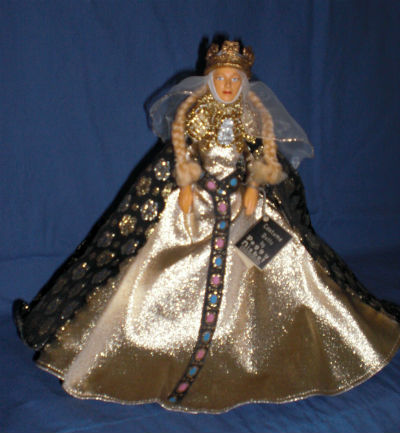 Eleanor of Aquitaine-Sideview Eleanor of Aqitaine-8″ Hard Plastic Eleanor of Aquitaine. The doll is from the Special Collector Set Number 14 and was part of a large estate sale collection of Peggy Nisbet Dolls which I purchased in 1999 from the Doll Haven in Youngstown, Arizona.