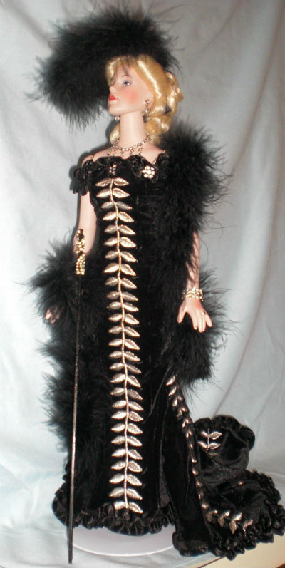 16″ Lady Lou from the Edith Head Collection. The doll portrays Lady Lou in ” She Done Him Wrong” Mae West film. This is based on a character played by Mae West in the 1933 Paramount Pictures melodrama musical.  The doll was designed by Robert Tonner and released in 1998 by the L.L. Knickerbacker Company, Inc. I purchased from the Doll Market in 2002.