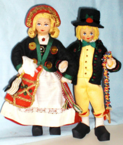 Swedish Wedding Couple-7 1/2″ Cloth Osterlen Bride & Groom. I purchased the dolls in 1975 directly from Charlotte Weibull of Malmo, Sweden.