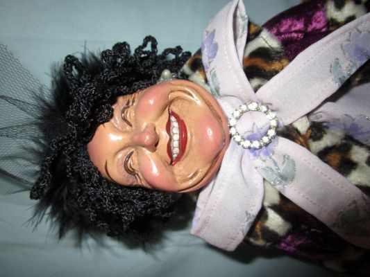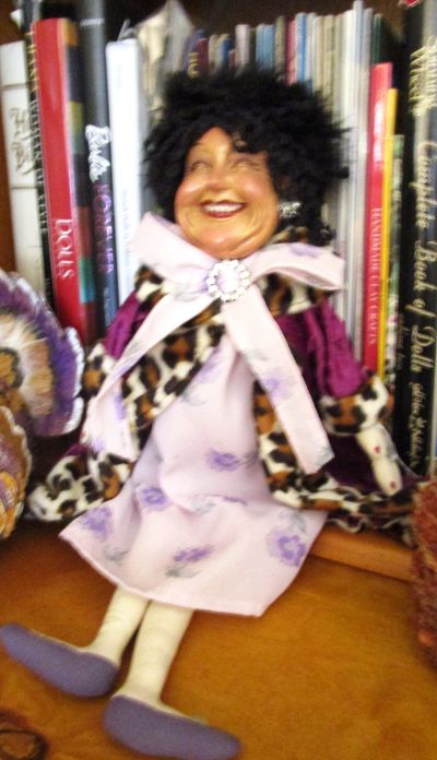 12″ Resin and Cloth Gossip Lady from the Lucky Lady Doll Series by Wayne M. Okleski for the Katherine’s Collection. The doll was purchased in 2025 from the Doll Hospital in Spring, Texas.