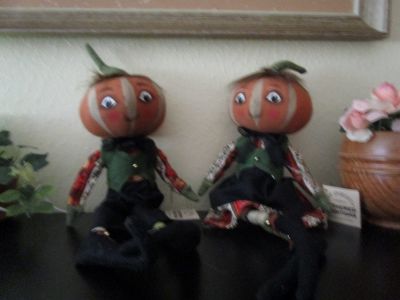 16″ Cloth Kermit and Kimberly Pumpkin Dolls by Joe Spencer. The dolls were created for Galleries II for their Gathered Traditions Collection. I purchased in 2026 from the Wind and Weather Catalog.