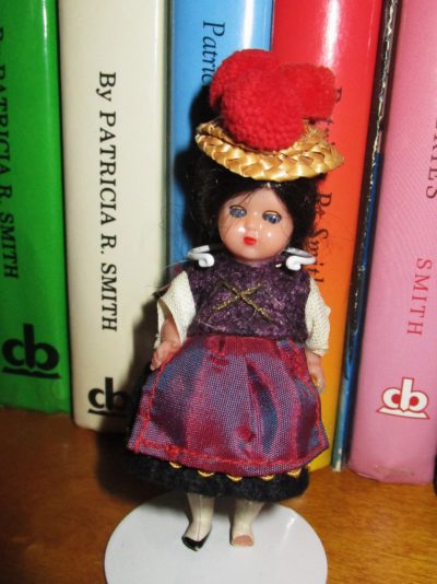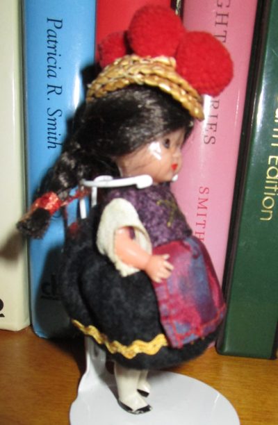 Tiny German Child-01Tiny German Child Side-013 1/2″ Plastic Tiny Celluloid Girl. The doll originally belonged to a lady, who’s father brought her dolls from his many travels. I purchased the doll from the Doll Hospital in Spring, Texas.